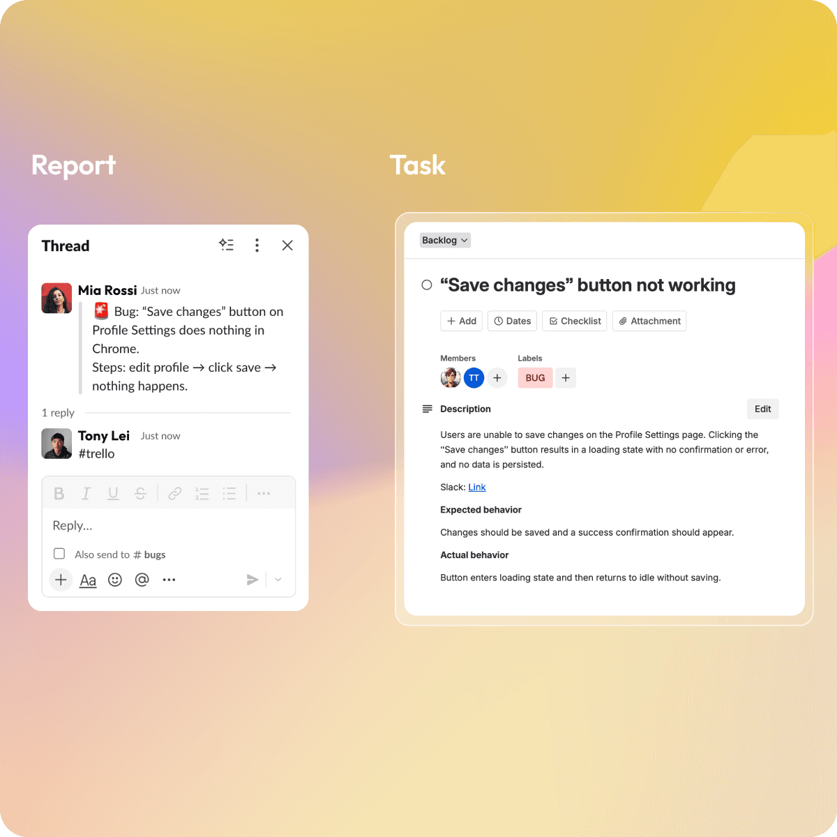 Slack reports to Trello tasks