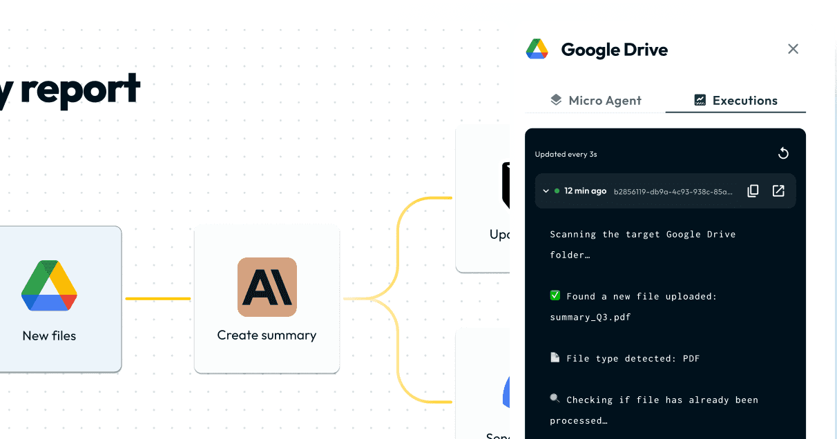 Semi-technical users can easily build automations with drag-and-drop or prompts.